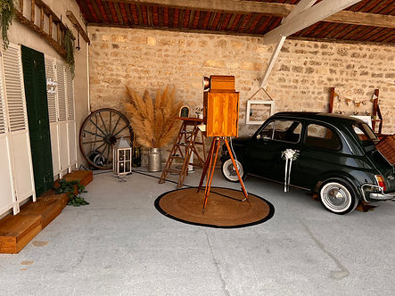 Les tonneaux en mange debout, les caisses à pommes en assises et les tables en palette sont mis à votre disposition